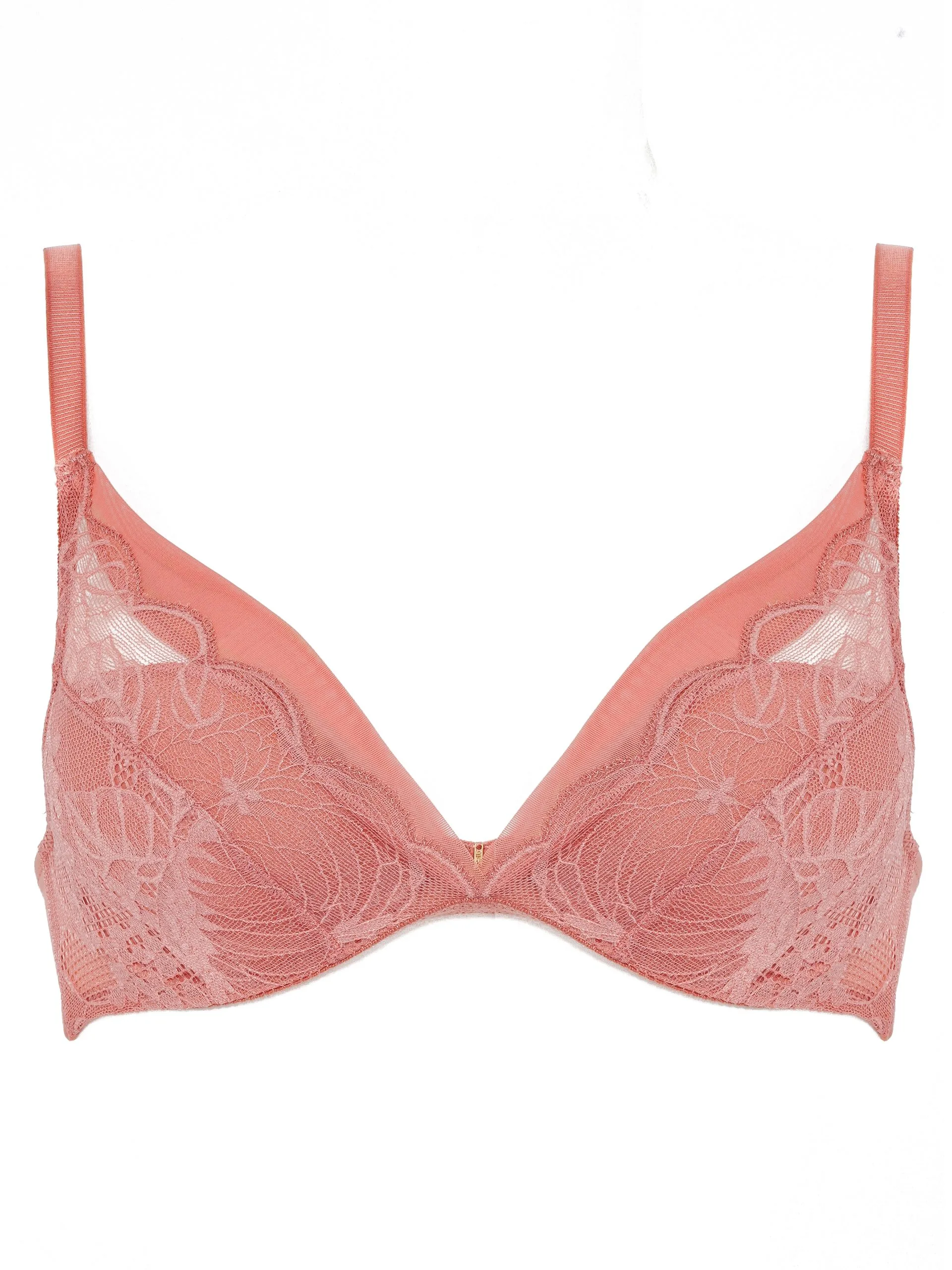 Tief ausgeschnittener T-Shirt-BH von Chantelle mit einer Kombination aus floraler Spitze und leichtem Tüll, für einen femininen Look.